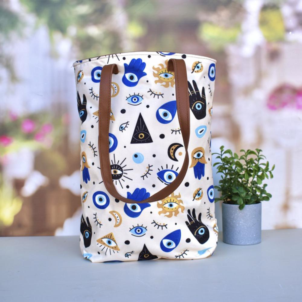 Los bolsos materos perfectos para combinar con tus termos favoritos! Bolso estampado de cordura con manijas de cuerina en color marrón. Ancho: 27cm Alto: 47cm