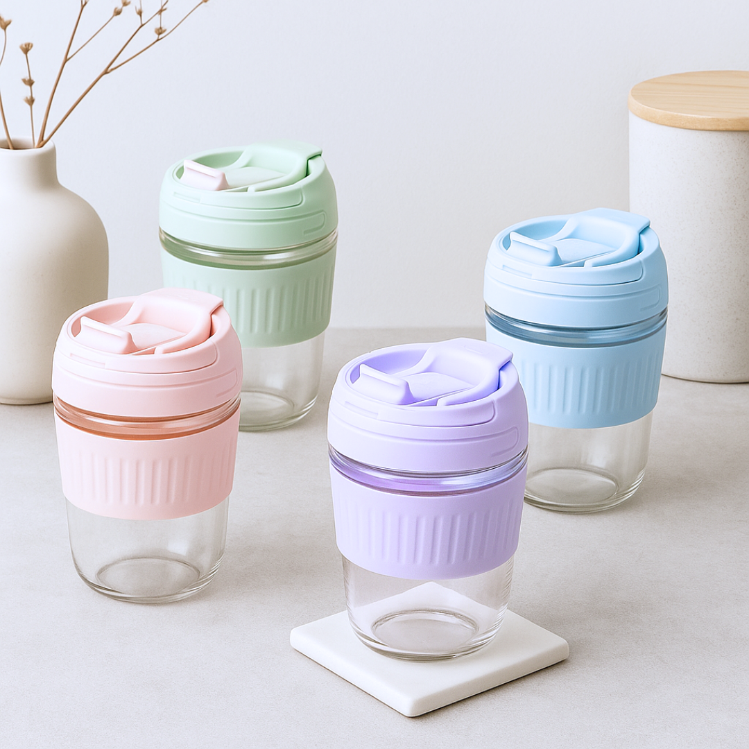 6M- VASO DE VIDRIO CON BANDA Y TAPA DE SILICONA