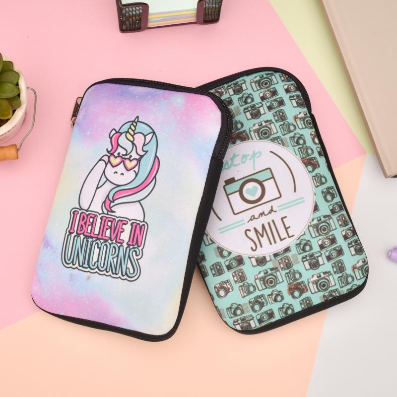 Funda para tablet de neoprene, estampada al frente.