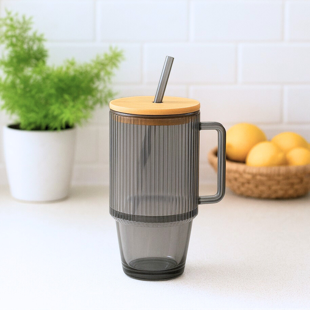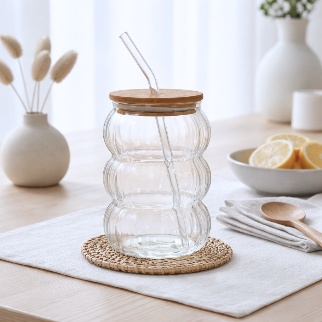 2Z- VASO DE VIDRIO CON TAPA BAMBU Y SORBETE