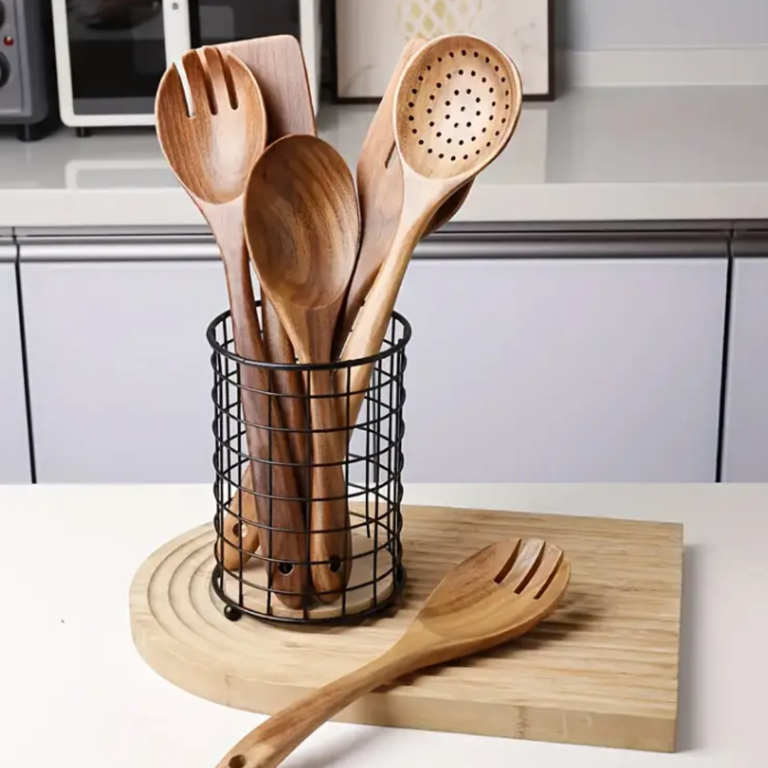 1L- DES SET UTENSILLOS SILICONA Y MADERA NEGRO
