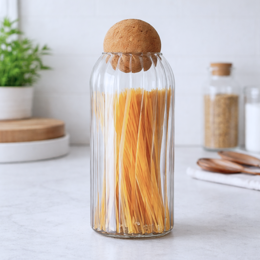 FRASCO ACANALADO TAPA CORCHO 15CM