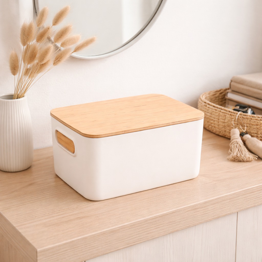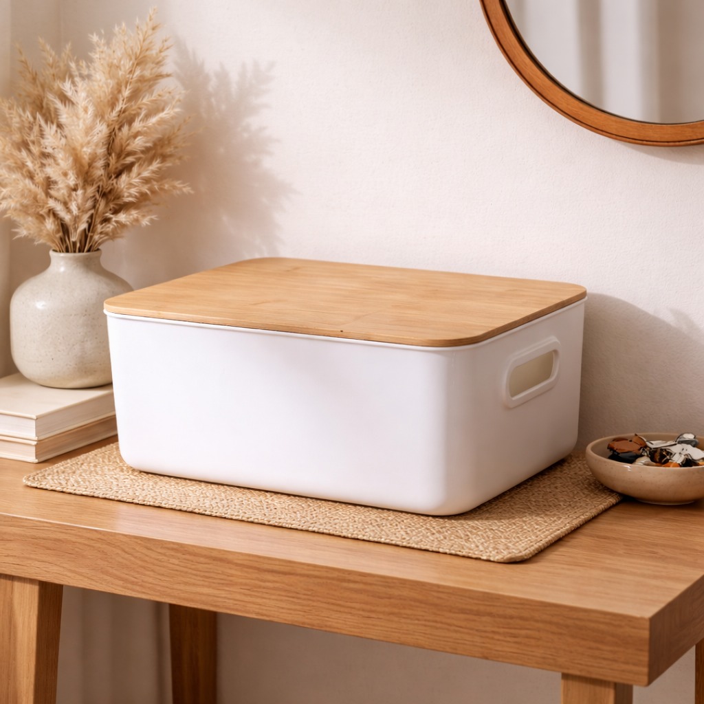 CANASTO PLASTICO TAPA BAMBU CHICO 6.5 LITROS
