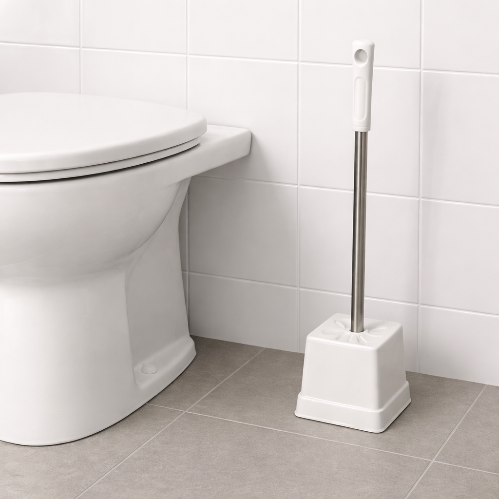 1X- ESCOBILLA DE BAÑO PLASTICA CON PALO DE ACERO